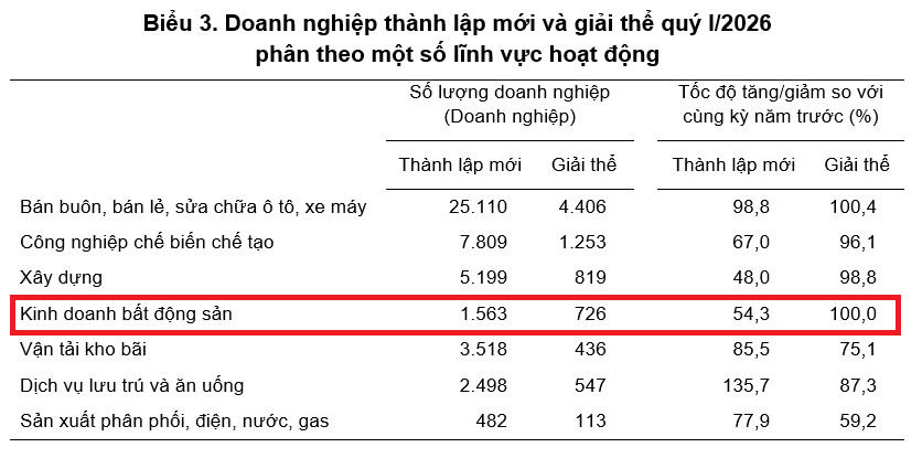 Tháng đầu tiên năm 2026, số lượng doanh nghiệp kinh doanh bất động sản thành lập mới tăng mạnh