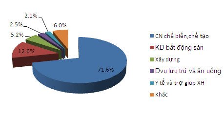 Đứng thứ 3 là lĩnh vực xây dựng với tổng số vốn đăng ký cấp mới và tăng thêm là 1,05 tỷ USD, chiếm 5,2% tổng vốn đăng ký.