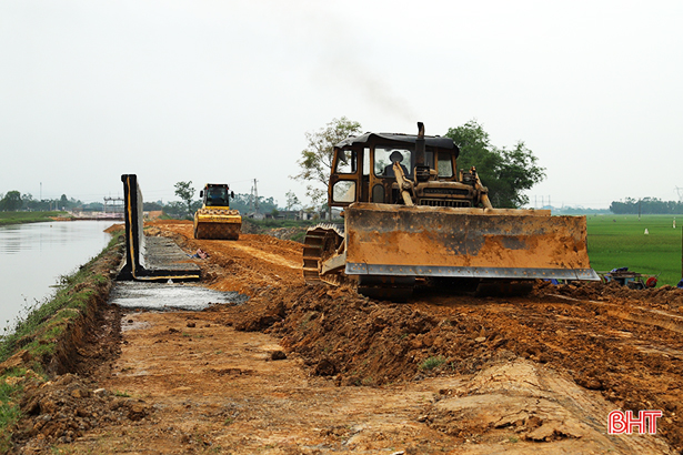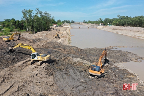 Nhà thầu tập trung nhân lực thi công tiểu dự án ứng phó với biến đổi khí hậu, tiêu thoát lũ và vệ sinh môi trường huyện Thạch Hà.