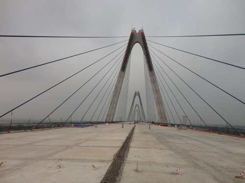 Cầu Nhật Tân dài 8,9 km bắc qua sông Hồng, với phần cầu chính dài 3,7 km, phần đường dẫn dài 5,2 km đã chính thức hợp long.