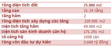 dựng gồm 4 tòa tháp cao từ 25 đến 29 tầng cung cấp 1008 căn hộ cao cấp.