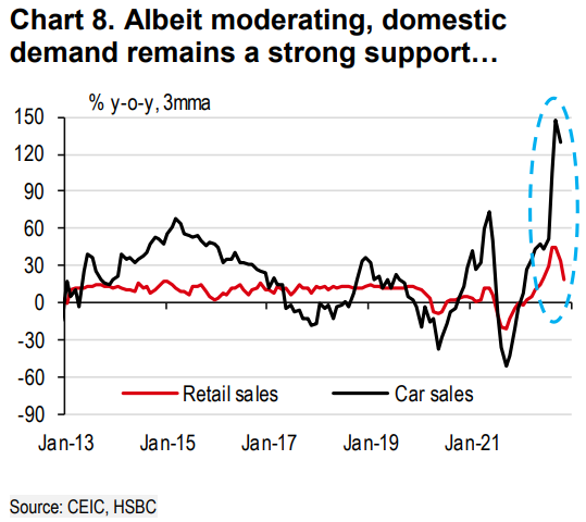 | Mặc dù đang bắt đầu chững lại, nhu cầu trong nước vẫn là nguồn hỗ trợ mạnh mẽ… | … và số lượng du khách tiếp tục phục hồi. |