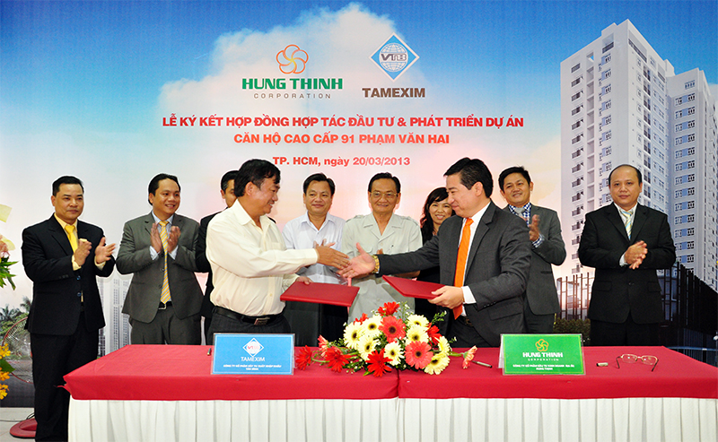 CafeLand - Vừa qua, Công ty Hung Thinh Corp đã ký kết hợp đồng với Công ty CP Vật tư XNK Tân Bình (Tamexim) về việc hợp tác đầu tư phát triển dự án căn hộ 91 Phạm Văn Hai.