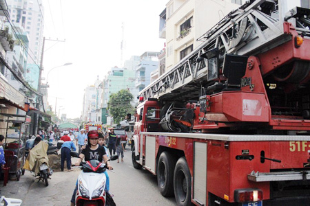 Khói cuộn từ căn hộ tầng 21 thoát ra khỏi ô cửa sổ tạo thành cột khói cao. Nhận được tin báo, Sở Cảnh sát PCCC TP HCM đã huy động lực lượng với 10 xe chữa cháy và gần 100 CBCS đến hiện trường triển khai chữa lửa.