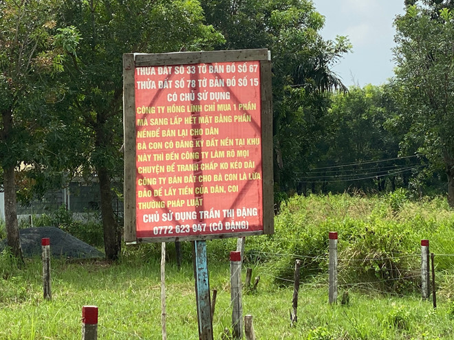 Ông Nguyễn Chí Xuân, một khách hàng mua đất tại đây, cho biết đây không phải là đầu tiên Công ty Hồng Lĩnh cố tình trốn tránh trách nhiệm mà từ hơn chục năm nay, những người lãnh đạo của Công ty Hồng Lĩnh luôn lẩn tránh giải quyết quyền lợi cho khách hàng. “Trước đây tôi làm việc ở Công an huyện Nhà Bè nên được suất mua nền đất tại đây. Sau khi mua tôi đã đóng 98% giá trị nền đất nhưng đến nay Công ty Hồng Lĩnh vẫn chưa xong hạ tầng kỹ thuật, chưa làm sổ đỏ cho khách hàng để chúng tôi làm nhà. Điều này đã gây rất nhiều khó khăn cho tôi và hàng trăm khách hàng khác”, ông Xuân nói và cho biết thêm, khi Công ty Hồng Lĩnh giao nền trên thực địa ông đi nhận đất thì nền đất của ông và nhiều khách hàng khác lại nằm trên khu đất của một hộ dân khác. “Khu đất này người dân nói chưa đền bù, nên người dân đã cắm cọc rào đất lại, gắn các biển đất đang tranh chấp”, ông Xuân bức xúc.