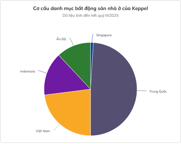 Đáng chú ý, trong chiến lược phát triển của Keppel, Việt Nam tiếp tục giữ vai trò trọng tâm. Tính đến cuối tháng 9, quỹ đất nhà ở của Keppel tại Việt Nam đạt 6.937 căn, chiếm 23% tổng quỹ đất toàn cầu, trong khi danh mục bất động sản thương mại đạt 401.210 m2, tương đương 26% tổng danh mục.