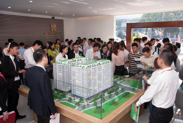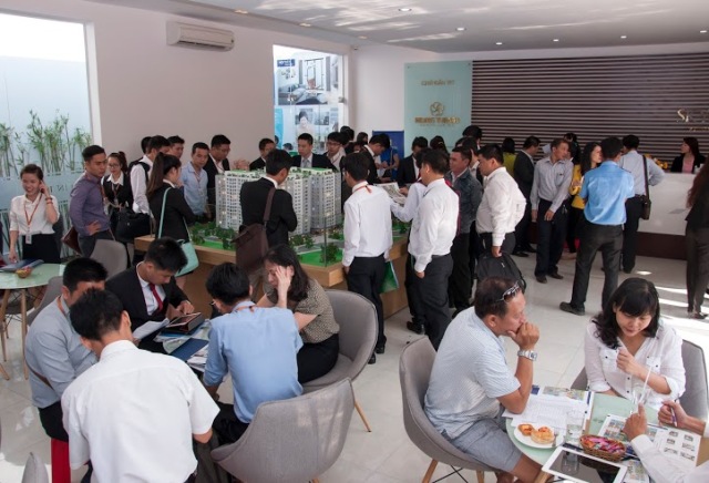 Ngày đầu tiên khai trương căn hộ mẫu thu hút đông đảo khách hàng tham dự.