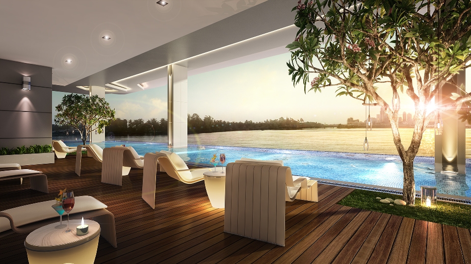 Bên cạnh đó là các tiện tích khác như: hồ bơi tràn bờ lap pool 50m tại tầng 1, sảnh đón thác nước, hồ cảnh quan, khu chăm sóc trẻ em, khu dịch vụ căn hộ, nhà hàng cafe,…