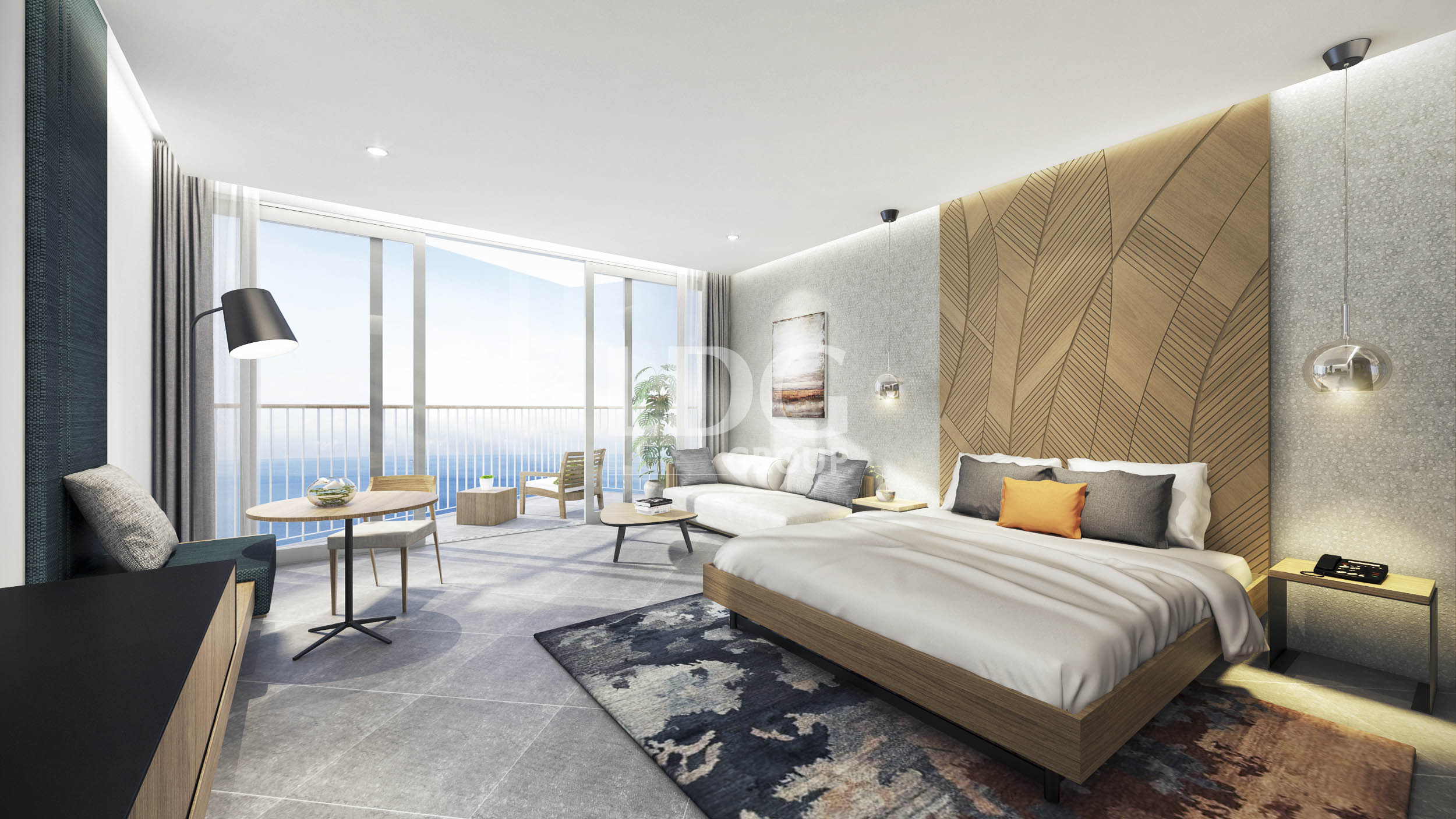 Đặc biệt, với thiết kế này, gần 80% số lượng căn condotel đều có hướng nhìn ra biển để tận dụng được gió và ánh sáng tự nhiên tối đa nhất. Bên cạnh đó, 20% số lượng căn condotel còn lại đều được thiết kế một cách khác biệt để tận dụng hướng nhìn về vịnh biển rộng hơn 41.000m2 và nhìn vào hồ bơi dài 160m.