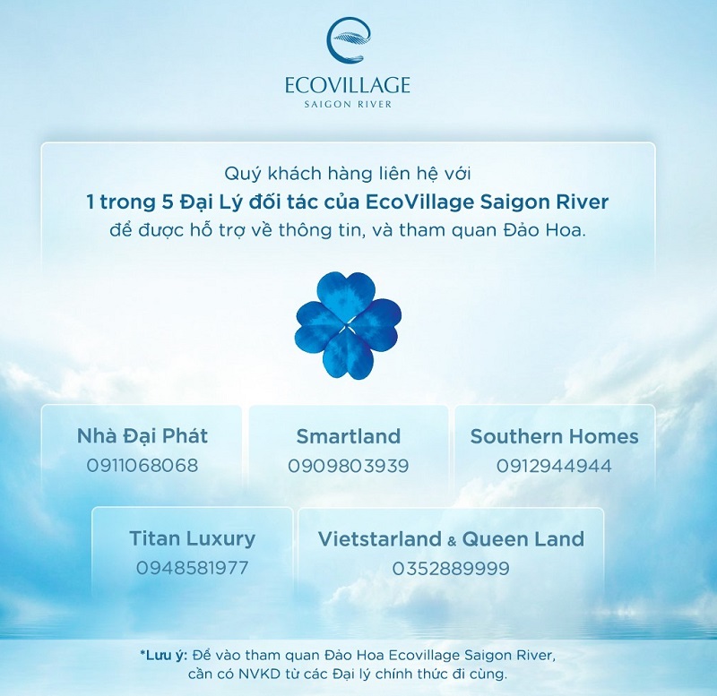 Cư dân và khách hàng quan tâm tới dự án, sự kiện có thể liên hệ với một trong các đại lý đối tác của dự án Ecovillage Saigon River để được tư vấn, hỗ trợ.