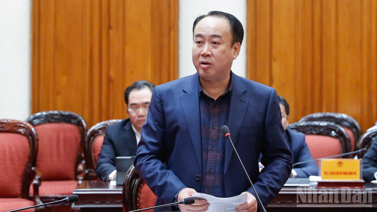 Phó Thủ tướng Bùi Thanh Sơn phát biểu ý kiến tại phiên họp. (Ảnh: Trần Hải)