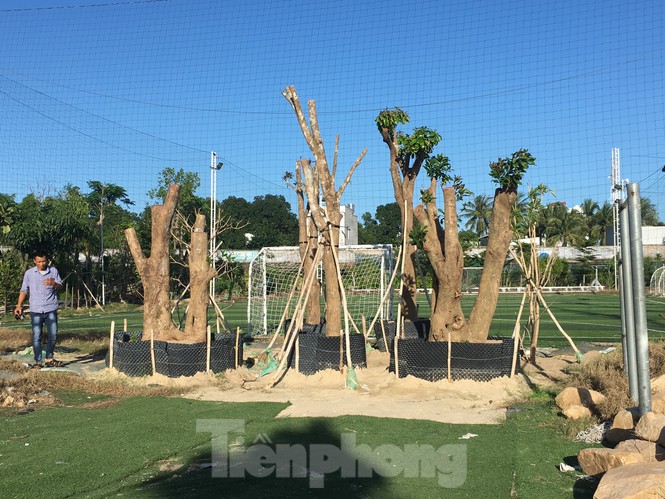 Cây cảnh được bày bán ngay trong SVĐ Cam Ranh.