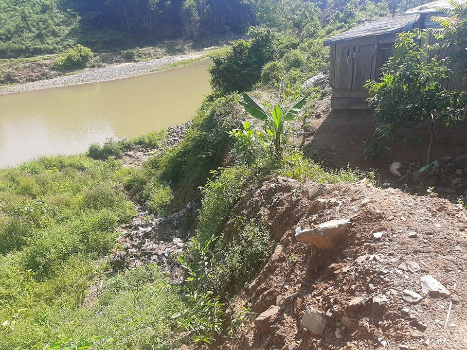 Theo phản ánh của người dân, chúng tôi đến thôn Bầu Sang, xã Liên Sang, huyện Khánh Vĩnh để ghi nhận tình trạng sạt lở bờ sông Cái đe dọa, uy hiếp nhiều hộ dân nơi đây.