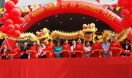 Các đại biểu cắt băng khánh thành dự án Saigonres Plaza