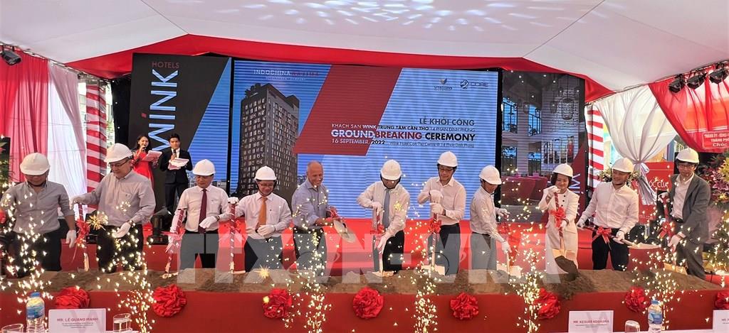 Nghi thức động thổ khách sạn Wink Trung tâm Cần Thơ - Ảnh TTXVN.