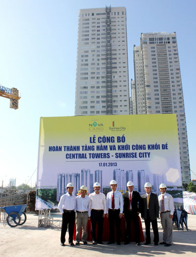 CafeLand - Ngày 17/01, Tập đoàn Novaland đã tổ chức lễ công bố hoàn thành tầng hầm và khởi công khối đế Central Towers tại khu phức hợp Sunrise City.