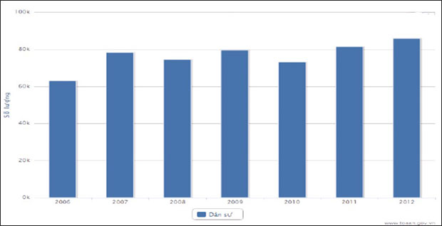 Biểu đồ số liệu giải quyết Sơ thẩm các vụ án dân sự của ngành tòa án qua các năm
