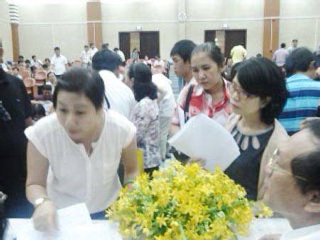 Chiều ngày 14/9 vừa qua, tại hội trường trụ sở UBND Q.Tân Phú, thông qua Hội BVQLNTD TP HCM, Công ty Đại Thành và hàng trăm khách hàng đã mua nhà của công ty đã có cuộc gặp mặt để cùng giải quyết vấn đề căn hộ chung cư. Tại cuộc gặp, đa số ý kiến khách hàng đồng ý chia sẻ khó khăn cho CĐT để có thêm kinh phí thực hiện tiếp dự án đang còn dở dang. Khách hàng đồng ý sẽ đóng tiếp cho CĐT đến 95% tổng giá trị hợp đồng, 5% còn lại khách hàng sẽ đóng khi nào CĐT giao Giấy chứng nhận sở hữu nhà ở.