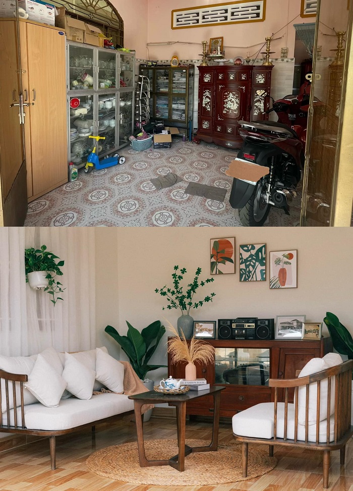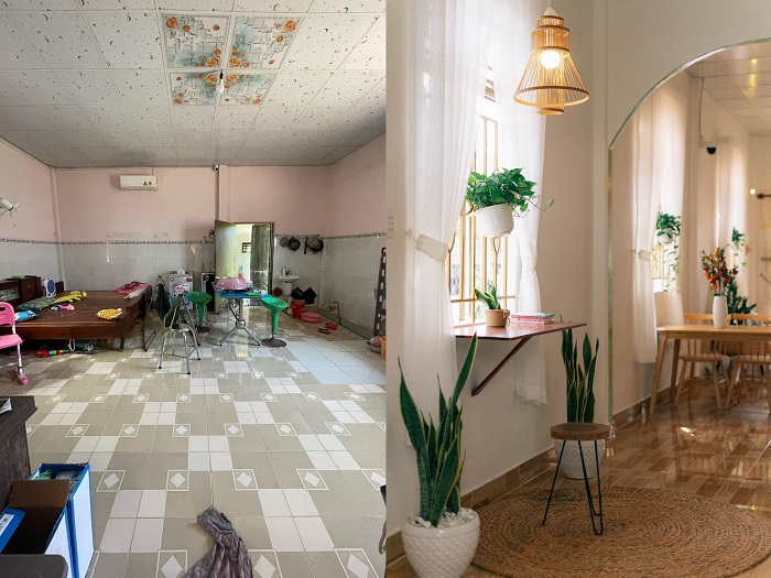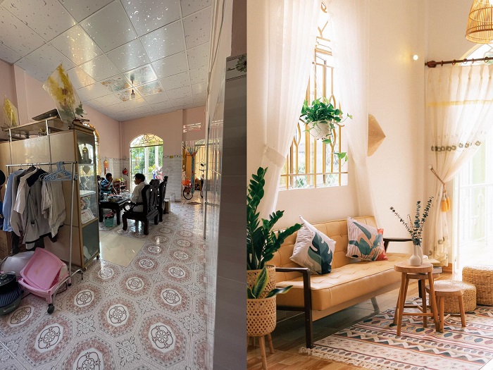 Trong suốt quá trình cải tạo, mỗi công đoạn cô nàng 9X luôn theo sát và tính toán cẩn thận. Đầu tiên, cô bố cục lại căn nhà theo ý mình, bao gồm dời bếp, xây lại phòng ngủ, dời nhà vệ sinh và tạo ra không gian sinh hoạt chung rộng rãi, thoải mái cho căn nhà. Những chỗ cần thay mới như gạch ốp tường, gạch nền, màu sơn chủ đạo trong căn nhà, gạch lót 2 sân,... cũng được ba của Trúc làm rất tỉ mỉ.