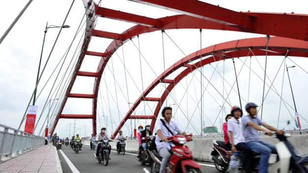 Người dân lưu thông qua cầu Bình Lợi mới (thuộc dự án Tân Sơn Nhất - Bình Lợi - vành đai ngoài) - Ảnh: M.Đức