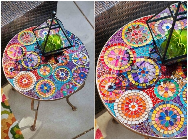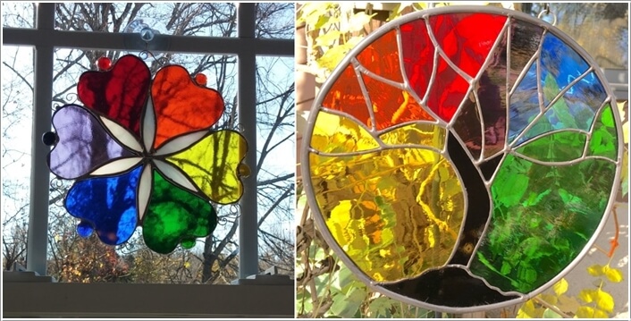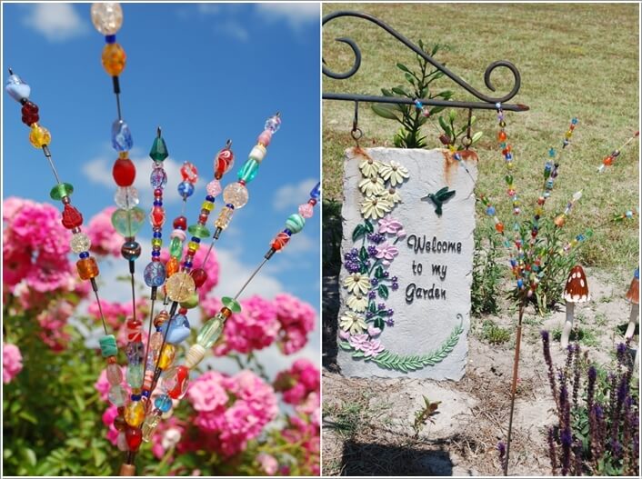 Dùng những thanh thép nhỏ, xâu chuỗi hạt nhựa màu sắc, trang trí cho khu vườn.