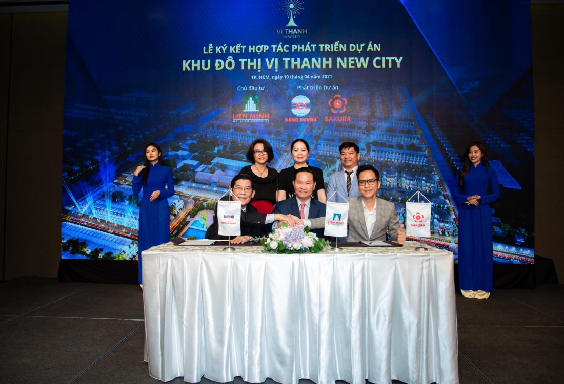Đại diện chủ đầu tư Liên Minh, các đơn vị phát triển dự án Băng Dương và Sakura Group ký kết hợp tác phát triển khu đô thị Vị Thanh New City.