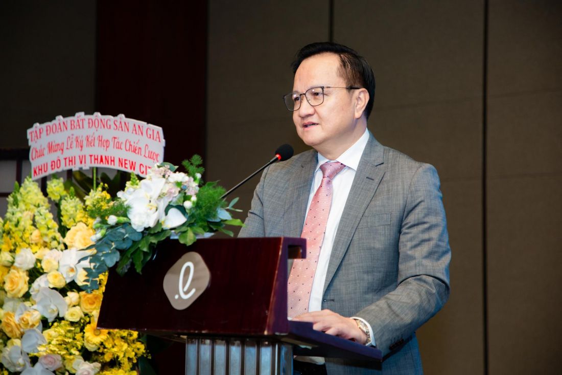 Ông Nguyễn Vĩnh Trân - đại diện Sakura Group - Đơn vị phát triển dự án KĐT Vị Thanh New City phát biểu tại sự kiện