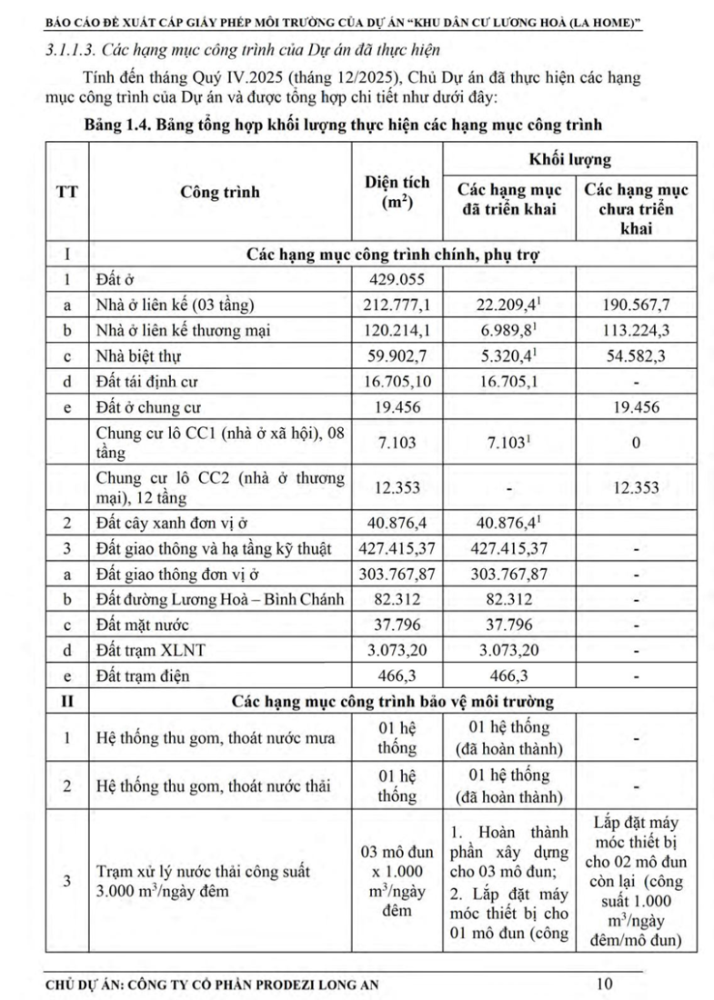 Một mốc pháp lý đáng chú ý trong giai đoạn hiện nay là dự án đã lập và trình thẩm định Báo cáo đề xuất cấp Giấy phép môi trường. Đây là thủ tục bắt buộc theo quy định pháp luật đối với các dự án khu dân cư có quy mô lớn trước khi đưa vào khai thác, vận hành.