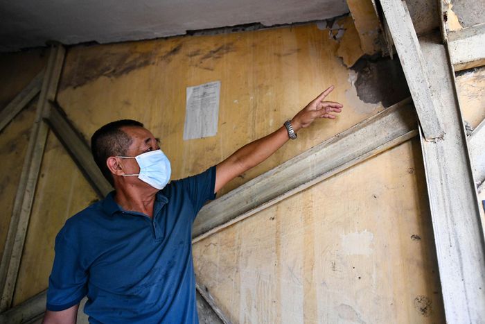 “Nhìn lên trần nhà chi chít những vết nứt khiến tôi rất bất an. Tôi phải dùng giấy dán tường tạm che lại để đỡ phải nhìn vào nó”, chủ hộ 206 chia sẻ. Người dân nơi đây cũng phải tự bỏ tiền túi để sửa chữa những hư hỏng trong căn hộ của mình. Riêng phần mái và cầu thang của cả khu nhà là diện tích sử dụng chung, không thuộc sở hữu cá nhân, do đó nếu không có sự hỗ trợ của thành phố thì rất khó giải quyết", ông Gắng nói thêm.