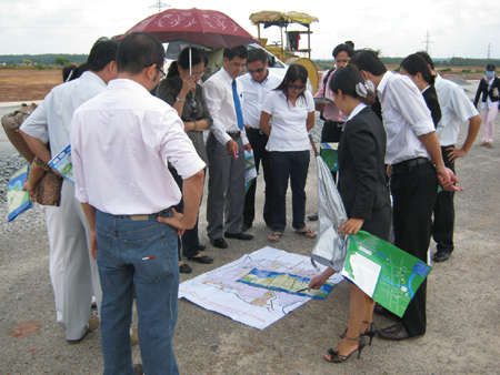 | Khách hàng ùn ùn đi xem đất dự án Green River ở Bình Dương ngày 9.10. Ảnh: Quỳnh Mai |