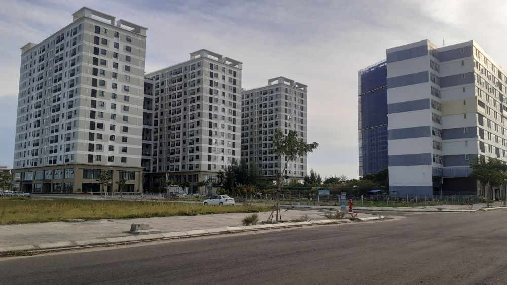 Tỷ lệ tiêu thụ trên nguồn cung mới về sản phẩm căn hộ đạt khoảng 23%, tương đương 29 căn, giảm 33% so với cùng kỳ năm trước. Đáng chú ý, phân khúc căn hộ hạng C dẫn dắt nguồn cung mới toàn thị trường và phân bổ chủ yếu tại các quận Liên Chiểu, Ngũ Hành Sơn của TP. Đà Nẵng. Trong ảnh là một dự án căn hộ cao cấp nằm trên đường Võ Nguyên Giáp, thành phố Đà Nẵng. Ảnh: Lưu Bang