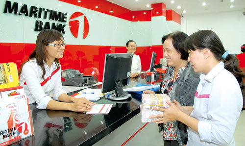Khách hàng giao dịch tại Maritime Bank. Ảnh: CAO THĂNG