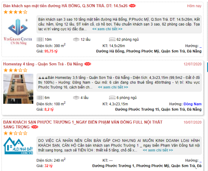 Thực tế là trên một số trang mua bán nhà đất, hàng chục bản tin rao bán khách sạn, nhà nghỉ, homestay… tại Đà Nẵng được đăng mỗi ngày.