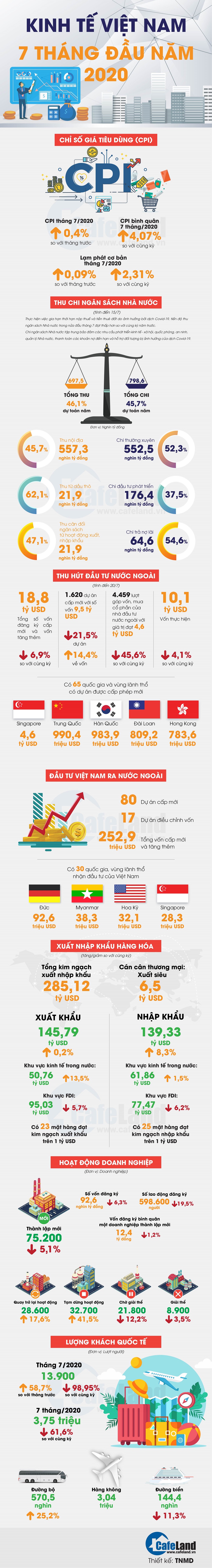 CafeLand - Trong nửa đầu năm 2020, do ảnh hưởng của dịch Covid-19, kinh tế Việt Nam ghi nhận mức tăng trưởng GDP thấp nhất 10 năm, chỉ số giá tiêu dùng tăng 4,19%, cán cân thương mại hàng hóa xuất siêu ước tính đạt 4 tỷ USD,...