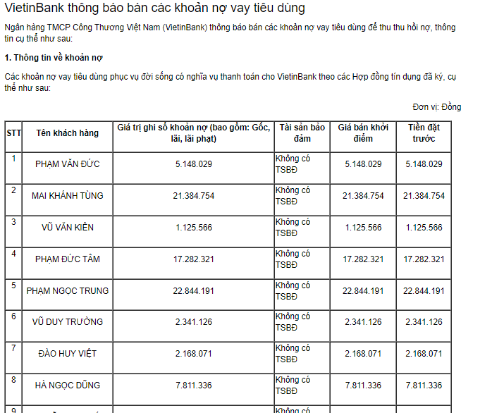 Vietinbank rao bán cả khoản nợ có giá hơn 480.000 đồng.