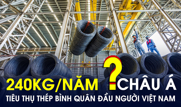 Tiêu thụ thép bình quân đầu người của Việt Nam hiện ước tính khoảng 240kg, thấp hơn mức trung bình của châu Á là 309kg