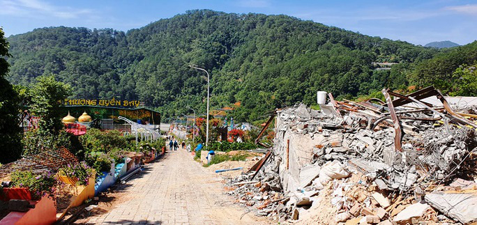 Đây là điểm du lịch nằm ngay cửa ngõ TP Đà Lạt, từng gây xôn xao dư luận cách đây 1 năm do xây dựng không phép, buộc phải tháo dỡ.
