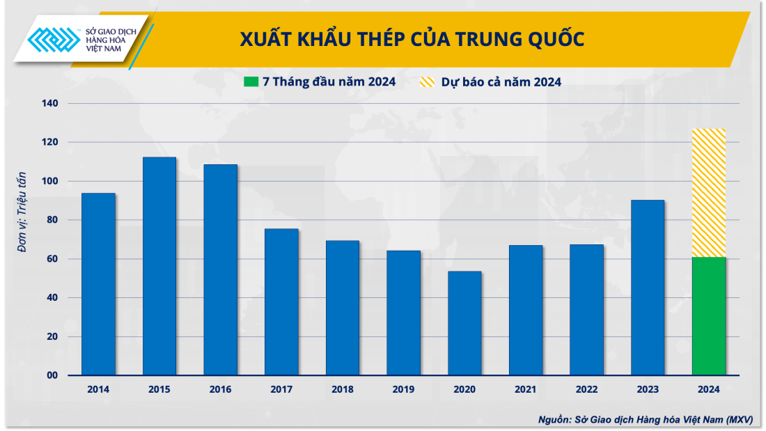 Xuất khẩu thép Trung Quốc tăng mạnh. Nguồn: MXV