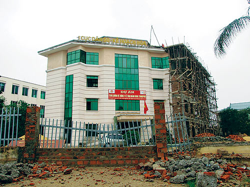 Điển hình là công trình cải tạo, sửa chữa trụ sở Chi cục Dân số và Kế hoạch hóa gia đình, với số tiền 1,2 tỉ đồng. Bà Nguyễn Thị Ngọc Hà, Chi cục trưởng, cho biết vì bị thấm dột và phòng làm việc quá chật nên phải cơi nới. Đơn vị thi công đã cắt, đập bỏ hơn một nửa bề mặt ngoài của tòa nhà còn khá mới và những mảng tường, ô kính phút chốc thành phế thải. Nguyên bản trụ sở 4 tầng này có lẽ được xếp vào diện “hàng độc” bởi có rất nhiều góc cạnh và “siêu mỏng”. Sau khi cải tạo, tòa nhà còn kỳ lạ hơn bởi lối đi hẹp và uốn lượn như thử thách tài trốn tìm.