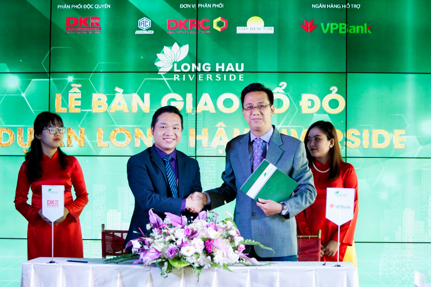 Song song với buổi lễ trao sổ dự án Long Hậu Riverside, đại diện đơn vị phân phối cũng tiến hành lễ ký kết hợp tác với ngân hàng hỗ trợ TMCP Việt Nam Thịnh Vượng (VPBank), cam kết hỗ trợ cho vay 50% giá trị sản phẩm nhằm giúp khách hàng dễ dàng sở hữu sản phẩm tại Long Hậu Riverside.