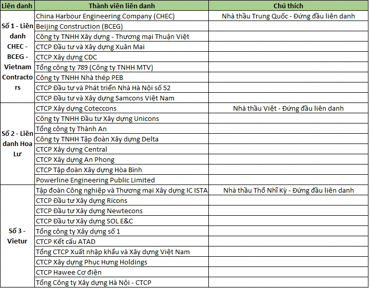 Còn đối với Liên danh CHCE - BCEG - Vietnam Contractors, theo báo Lao Động, nhà thầu này đã đề xuất thay thế nhiều nhân sự chủ chốt khi nộp hồ sơ trong quá trình chấm thầu. Sau khi xem xét, đánh giá các tài liệu bổ sung, làm rõ của nhà thầu cung cấp, kết quả đánh giá hồ sơ đề xuất kỹ thuật của liên danh nhà thầu CHEC-BCEG-Vietnam Contractors vẫn có 18 nhân sự không đáp ứng yêu cầu của hồ sơ mời thầu về năng lực kỹ thuật.