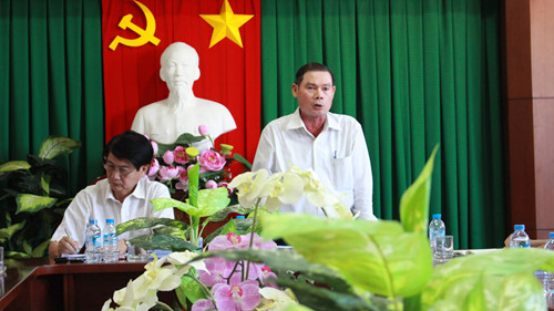 Ông Đỗ Phi Hùng (phải) chủ trì cuộc họp về các vấn đề liên quan đến chung cư Era Town tại UNBD quận 7 - Ảnh: Vũ Phượng