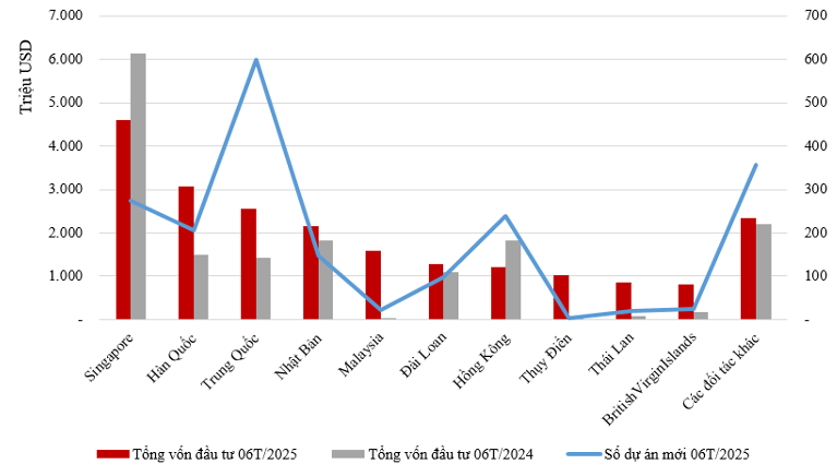 Đầu tư nước ngoài 6 tháng đầu năm 2025 theo đối tác