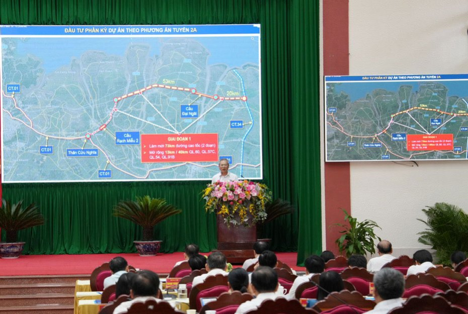 Phát biểu kết luận hội nghị, Bí thư Tỉnh ủy Trần Văn Lâu thống nhất với phương án 2A, đồng thời yêu cầu làm rõ cơ sở lựa chọn và tiếp tục phân tích tính khả thi của dự án. Định hướng chung là tận dụng tối đa hệ thống giao thông hiện hữu, đảm bảo hiệu quả đầu tư và phù hợp nguồn lực tài chính.