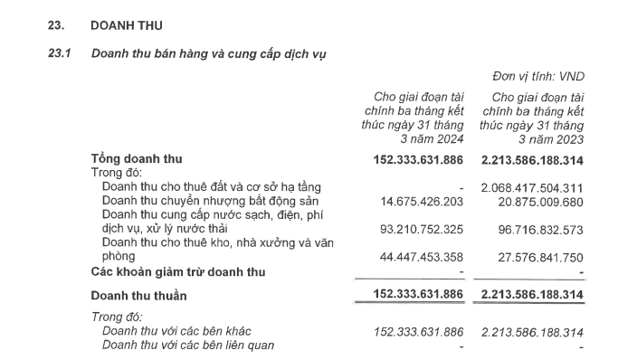 Doanh nghiệp lý giải kết quả tiêu cực quý đầu năm chủ yếu do không còn ghi nhận thu nhập tài chính từ chuyển nhượng khoản đầu tư và giảm doanh thu từ hoạt động kinh doanh khu công nghiệp.