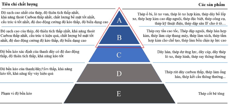 Thép chất lượng cao mà doanh nghiệp Việt Nam sản xuất được là các loại thép nguyên liệu phục vụ ngành cơ khí, chế biến chế tạo như cáp thang máy, làm lõi que hàn, lò xo, đinh ốc vít, thép dự ứng lực, tanh lốp ô tô…