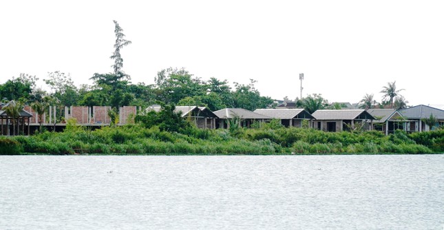 Nhìn từ trên cao, không có bóng dáng ngôi nhà vườn Huế hay sản phẩm nông nghiệp nào tại khu đất như thông tin ghi trong hồ sơ dự án. Tại khu dự án, nối tiếp nhau chạy dọc bờ sông Hương là các dãy nhà cửa bê tông xây không phép giống dạng khu biệt thự nghỉ dưỡng, hoặc sản phẩm cao cấp của dự án bất động sản.