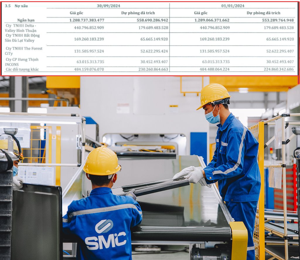 Tại thời điểm 30/9, báo cáo tài chính thể hiện SMC đã trích lập dự phòng gần 560 tỷ đồng cho khoảng 1.300 tỷ đồng nợ xấu.
