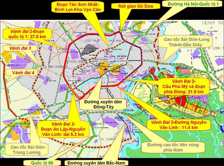 Đối với các dự án: Xây dựng, mở rộng Quốc lộ 50, huyện Bình Chánh; Cải tạo, nâng cấp Quốc lộ 22 (từ An Sương đến đường Nguyễn Văn Bứa); Xây dựng 2 cầu trên tuyến đường N2 và đường N4 để kết nối giao thông với lô đất ký hiệu 7-1 thuộc khu chức năng số 7 trong Khu đô thị mới Thủ Thiêm; Xây dựng cầu Rạch Dơi; Xây dựng nút giao An Phú (giai đoạn 1); Xây dựng đường cao tốc TP.HCM - Mộc Bài; đường Vành đai 2 - đoạn 1 và đoạn 2; Xây dựng cầu đường Nguyễn Khoái; Xây dựng cầu Bình Triệu 2; Xây dựng đường nối đường Trần Quốc Hoàn - đường Cộng Hòa và dự án Nạo vét, cải tạo môi trường, xây dựng hạ tầng ven rạch Xuyên Tâm (từ kênh Nhiêu Lộc Thị - Nghè đến sông Vàm Thuật, quận Bình Thạnh, quận Gò Vấp) thì Ban Quản lý dự án đầu tư xây dựng các công trình giao thông sẽ phối hợp với Ban Quản lý dự án đầu tư xây dựng hạ tầng đô thị hoàn thiện hồ sơ đề xuất chủ trương đầu tư công theo ý kiến góp ý của sở-ngành. Sở Kế hoạch và Đầu tư sẽ lập danh sách những dự án đủ điều kiện cũng như những dự án không đủ điều kiện trình HĐND TP để UBND TP báo cáo tại cuộc họp Tổ công tác về đầu tư.