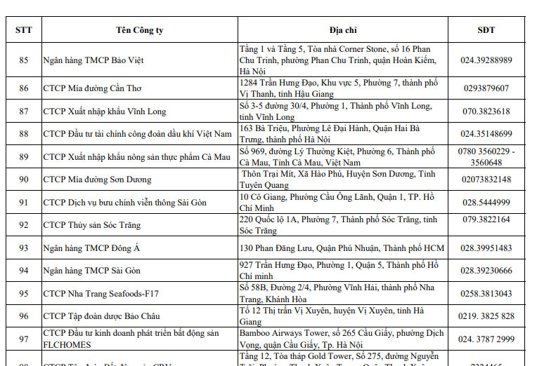 Đáng chú ý, trong danh sách này có sự xuất hiện của một số ngân hàng thương mại như Ngân hàng TMCP Đại chúng Việt Nam (PVcomBank), Ngân hàng TMCP Bảo Việt (BaoViet Bank), Ngân hàng TMCP Đông Á (DongA Bank), Ngân hàng TMCP Sài Gòn (SCB).